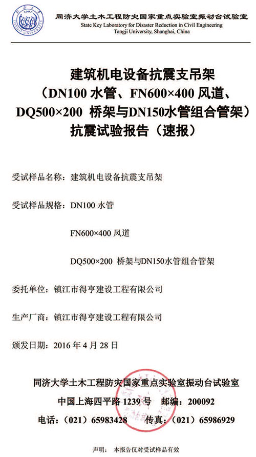 • 抗震支吊架試驗報告